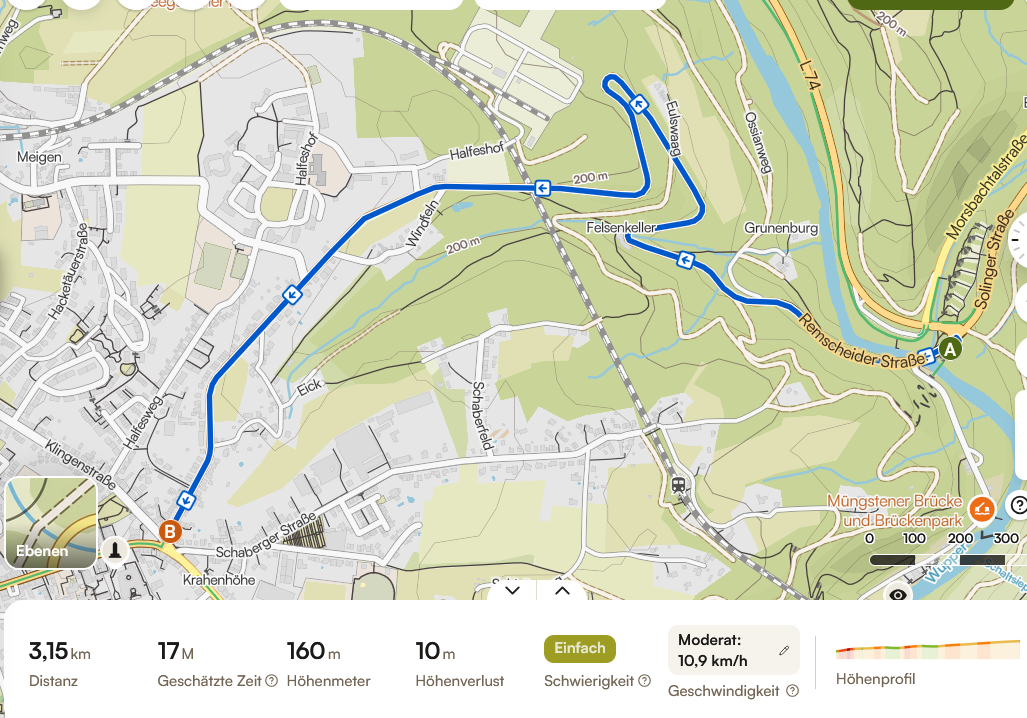 Vom Müngstener Brückenpark hoch zur Krahenhöhe. Am Solinger Wahrzeichen vorbei und 2 wunderbaren Kehren ist dieser Anstieg unrhythmisch. Wahrlich ein toller Start in die Klingenheld BZF Serie.